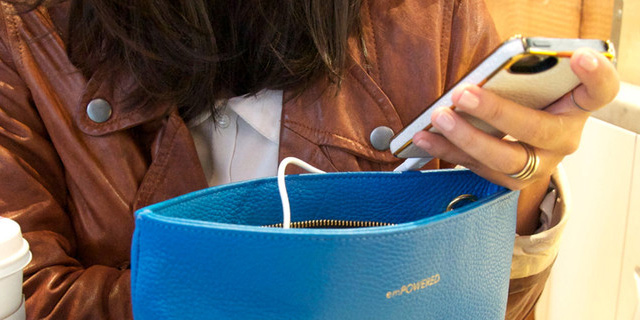 Las carteras y clutches Empowered Bag solucionan el problema de quedarse sin pila en el medio de una salida. Sus piezas están dotadas de una batería (recargable a través de la computadora o tomacorriente de pared) que permite conectar el cable del teléfono y llevar ese letal 5% a 100% dos veces.